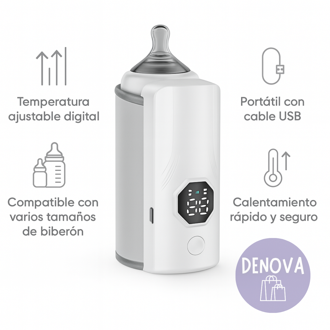 “Tu bebé no espera, y tú tampoco deberías. Con el nuevo calentador portátil USB, mantén la leche a la temperatura perfecta, estés donde estés.”